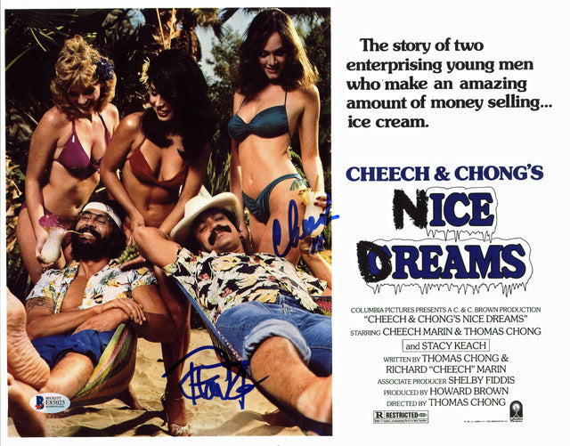 This Autographed 11x14 Photo has been personally signed by Cheech Marin & Tommy Chong from the classic stoner comedy Nice Dreams. A must-have for collectors and fans of the legendary comedy duo, this signed memorabilia is a rare and iconic piece celebrating their cultural impact.