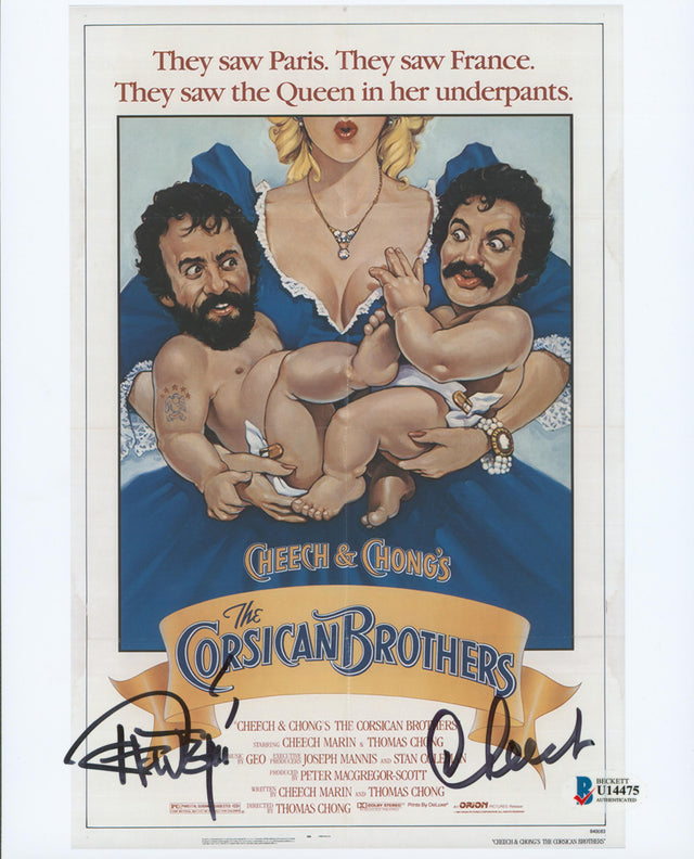 Own a piece of comedy history with this autographed 8x10 photo, personally signed by Cheech Marin & Tommy Chong from The Corsican Brothers. This legendary duo revolutionized stoner comedy, and this signed collectible is a must-have for fans of their iconic films and stand-up performances.