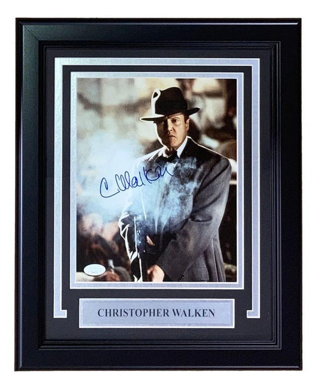 Celebrate the legendary career of a Hollywood icon with this Christopher Walken signed 8x10 photo, a must-have for serious collectors of entertainment memorabilia. Known for his unforgettable roles in classics like The Deer Hunter, Pulp Fiction, and Catch Me If You Can, Walken’s signature adds timeless value to this beautifully preserved piece of pop culture history. Professionally framed and matted to approximately 11x14 inches, this display-ready collectible blends authenticity with high-end presentation—perfect for your home, office, or personal gallery.