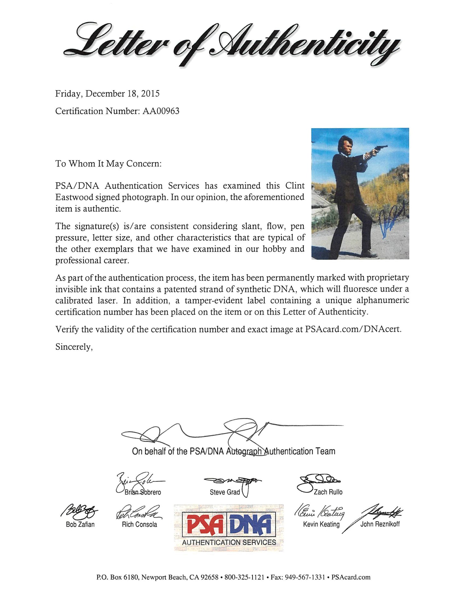 Clint Eastwood Dirty Harry Authentic Signed 8x10 Photo PSA/DNA #AA00963