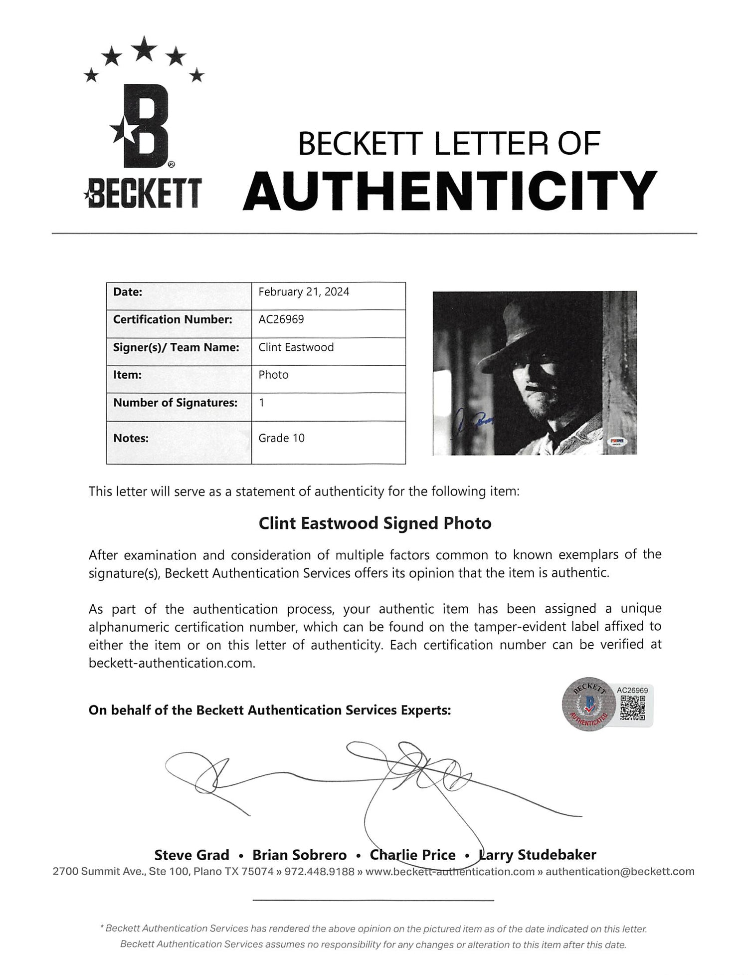 Clint Eastwood Good, the Bad & the Ugly Signed 8x10 Photo Auto 10! BAS #AC26969 is backordered and will ship as soon as it is back in stock.