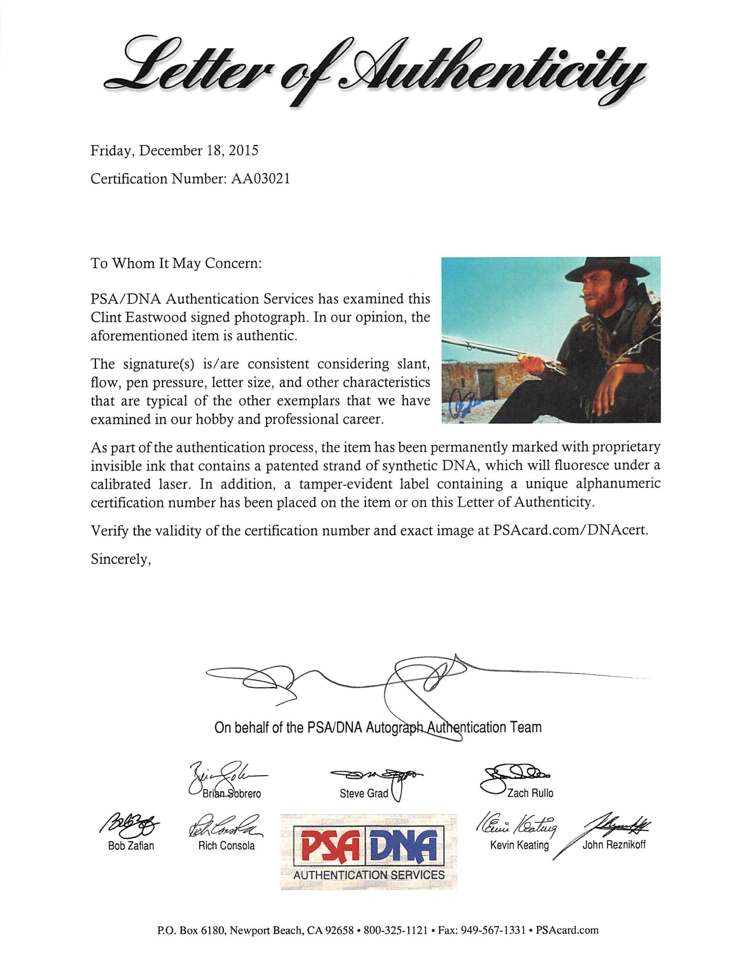 • Authentic Signature: Hand-signed by Clint Eastwood, making it a valuable addition to any memorabilia collection.