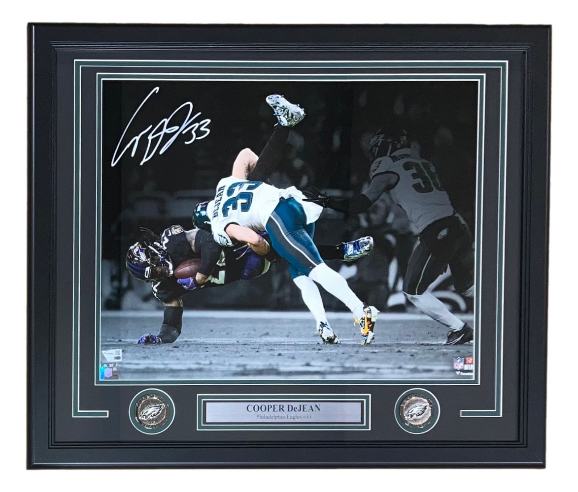 This professionally framed and matted piece measures approximately 22x27 inches, ensuring it arrives ready to showcase in your home, office, or fan cave. Secure this authentic signed Cooper DeJean photo today and celebrate your passion for the Philadelphia Eagles.