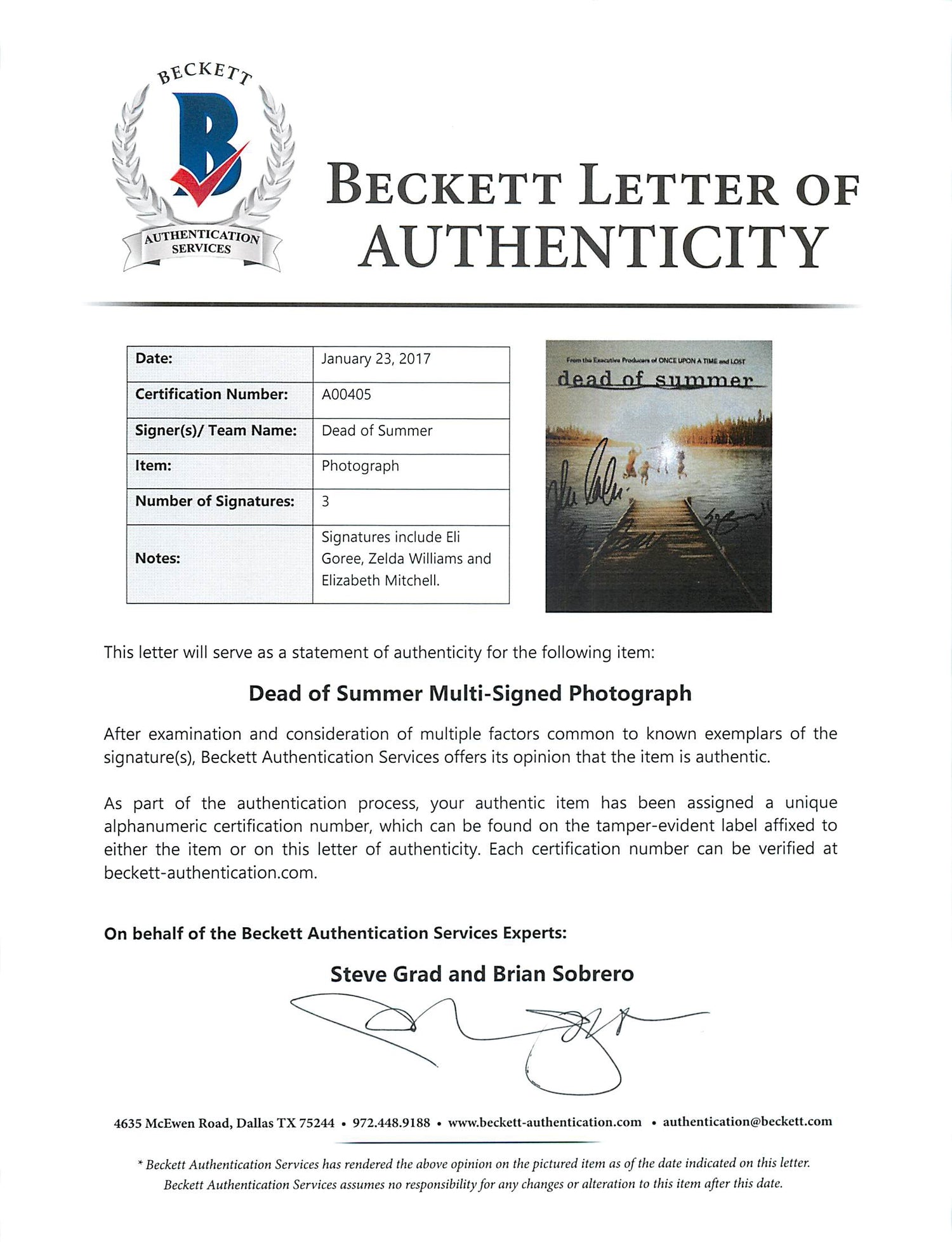 Dead Of Summer (3) Mitchell, Williams, Goree Signed 8X10 Photo BAS #A00405 is backordered and will ship as soon as it is back in stock.