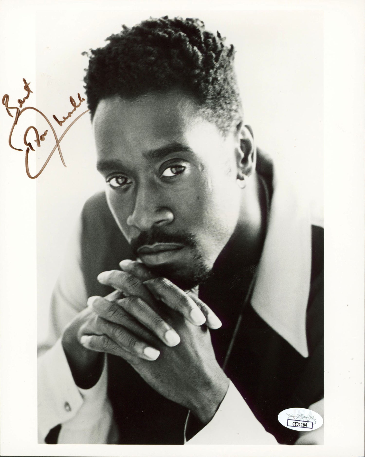 This authentic Don Cheadle autographed 8x10 vertical photo from his role in Miles Ahead is a true gem for any film fan or pop culture collector. Personally signed by the acclaimed actor and inscribed with "Best," this collectible celebrates Cheadle's unforgettable portrayal of jazz legend Miles Davis in the 2015 biographical drama. Cheadle not only starred but also directed and co-wrote the film, making this piece especially meaningful for cinema enthusiasts. Each photo is certified by JSA (James Spence Authentication), one of the most trusted names in memorabilia authentication, and includes a matching hologram and Certificate of Authenticity (COA)—verifiable directly on the JSA website. Please note, this item carries normal handling wear, consistent with a previously handled display piece.