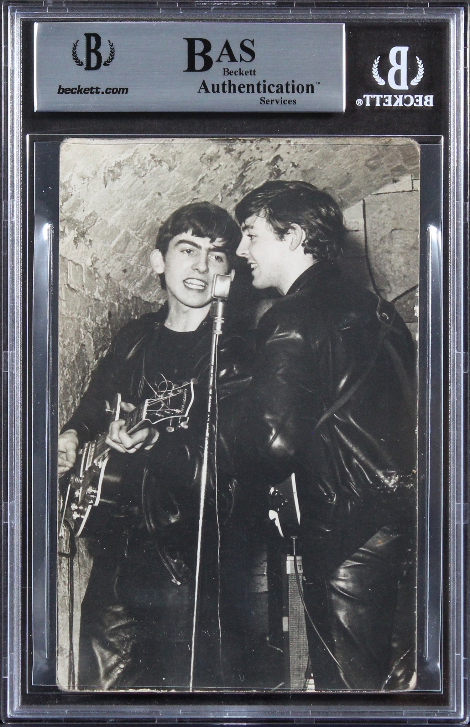 George Harrison, Graham Nash & Allan Clarke Signed 3.5x5.5 Photo BAS Slabbed