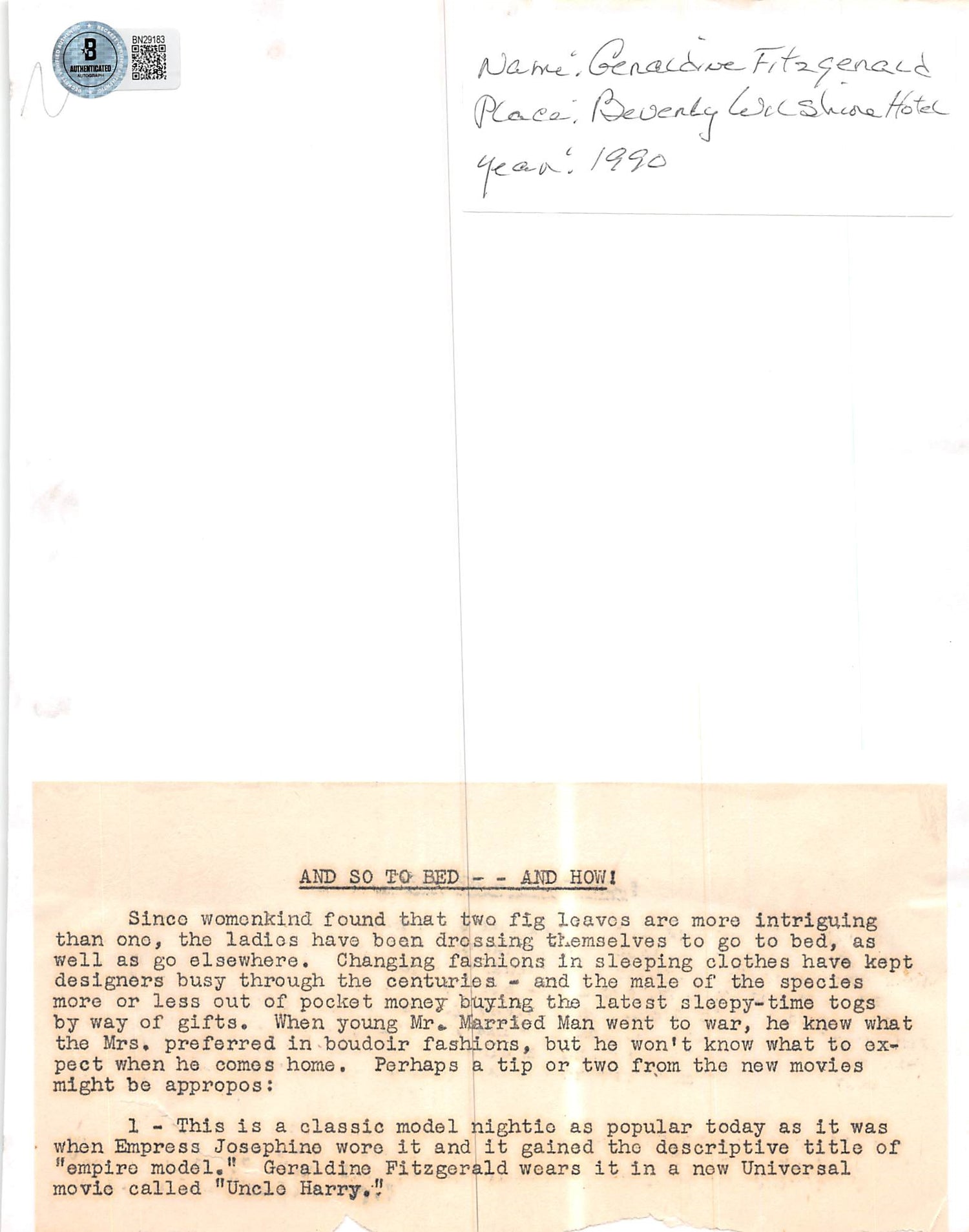 - Authenticity Guaranteed: This Geraldine Fitzgerald signed photo has been fully authenticated by Beckett Authentication Services (BAS).