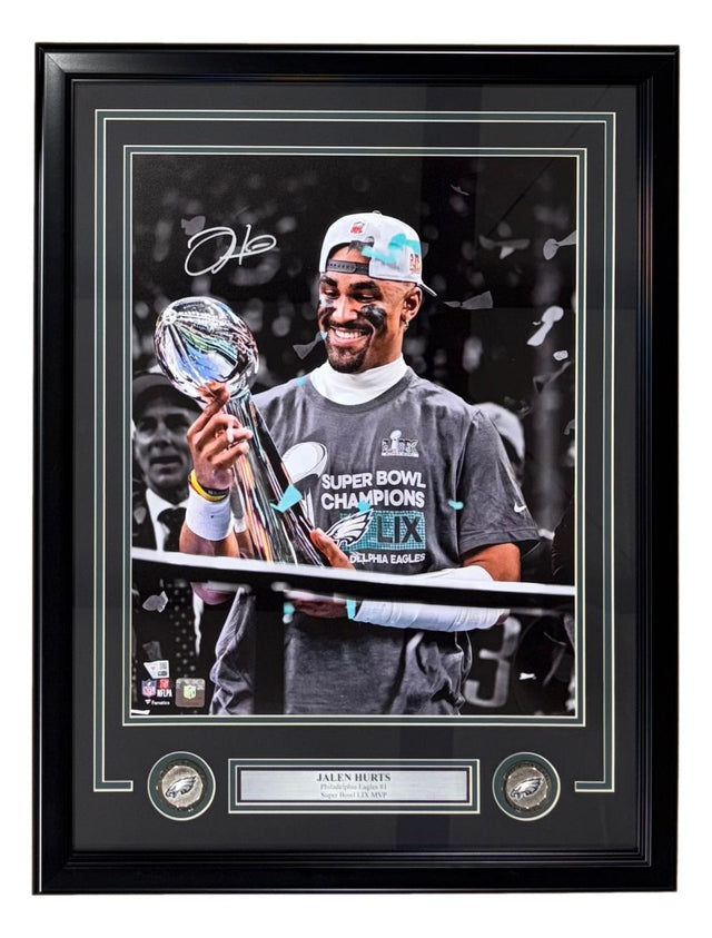 Jalen Hurts Signed Framed 16x20 Eagles Super Bowl LIX Trophy Photo Fanatics