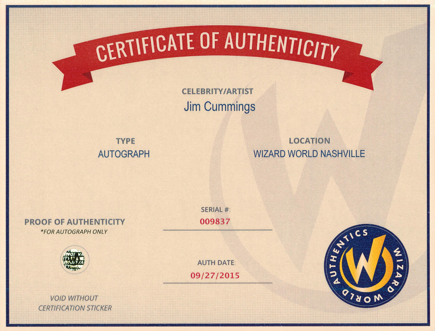 - Authenticity Confirmation – Can be verified through the Wizard World Authentics website.