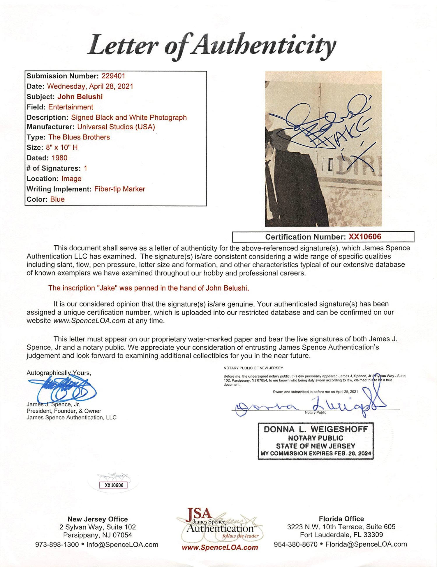 Whether you're a collector of film memorabilia or a dedicated Blues Brothers fan, this John Belushi autographed photo is a timeless keepsake. Don't miss the chance to own a piece of cinematic history!