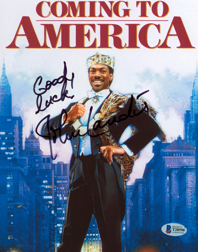 Own a piece of film history with this John Landis Autographed 8x10 Photo, featuring the inscription "Good Luck" from the legendary director of Coming to America. This exclusive collectible is a must-have for movie enthusiasts and autograph seekers alike.
