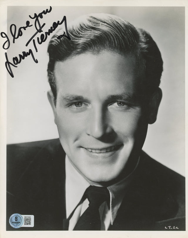 Own a piece of Hollywood history with this Lawrence Tierney Autographed 8x10 Photo from Bodyguard, featuring the heartfelt inscription "I love you." A legendary actor known for his tough-guy roles, Tierney’s signature adds significant collector’s value to this unique memorabilia.