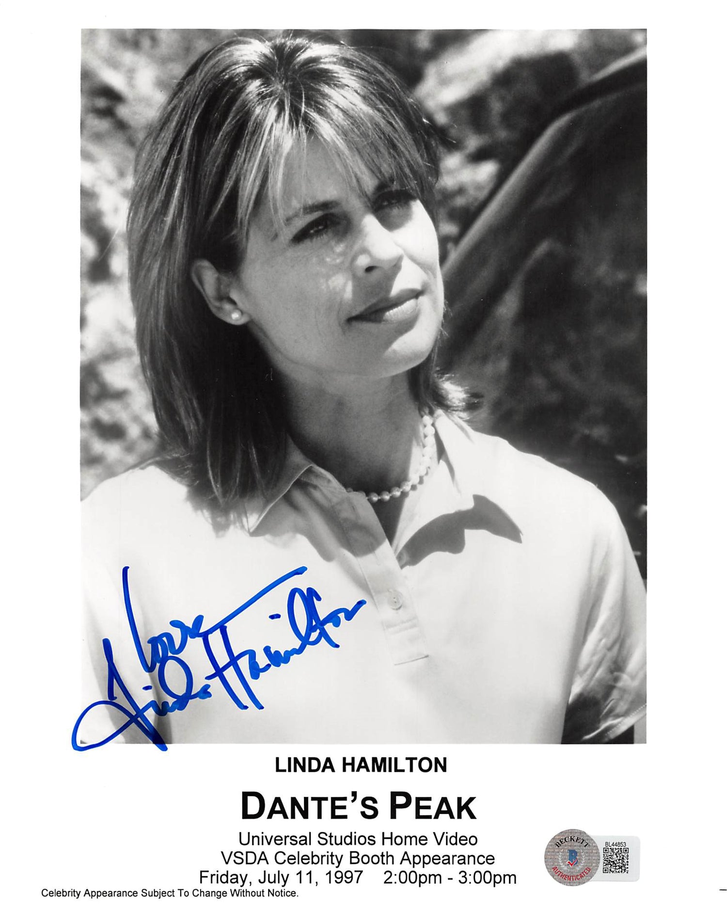 - Authentic Signature – Hand-signed by Linda Hamilton, the iconic actress known for her roles in Dante's Peak and Terminator.
