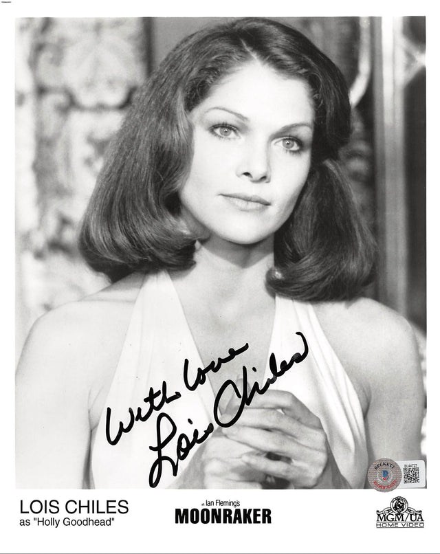 Own a piece of James Bond history with this Autographed 8x10 Photo personally signed by Lois Chiles, who portrayed Dr. Holly Goodhead in the iconic 1979 film, Moonraker. This collectible features the rare inscription "With Love", adding a personal touch that makes it even more special for fans and collectors.