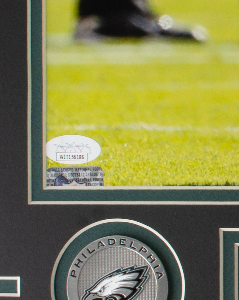 Celebrate the excitement of Philadelphia Eagles football with this authenticated and beautifully framed Miles Sanders signed photo—a timeless tribute to one of the team's rising stars!