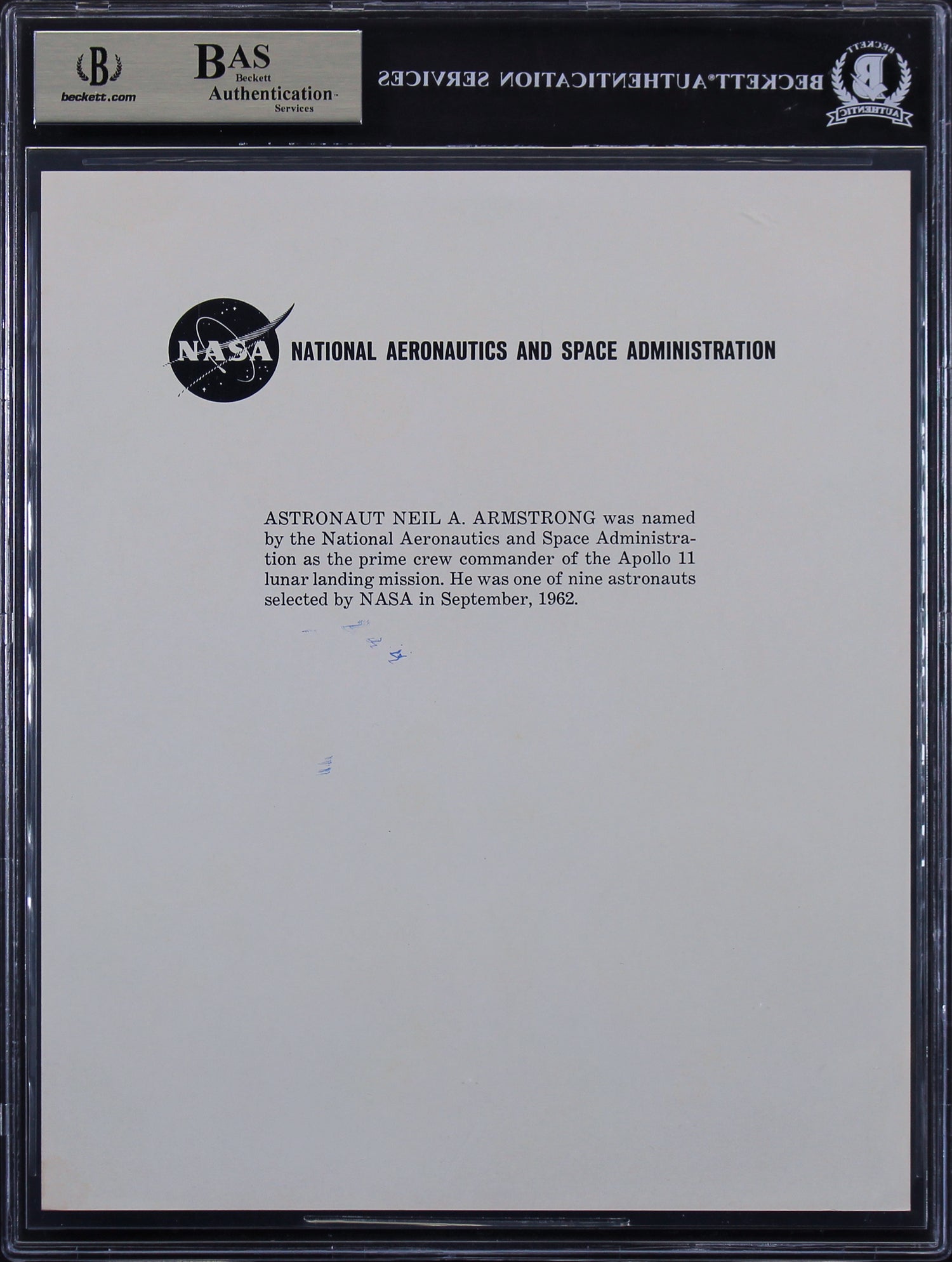 Neil Armstrong Apollo 11 Authentic Signed 8x10 NASA Photo BAS Slabbed
