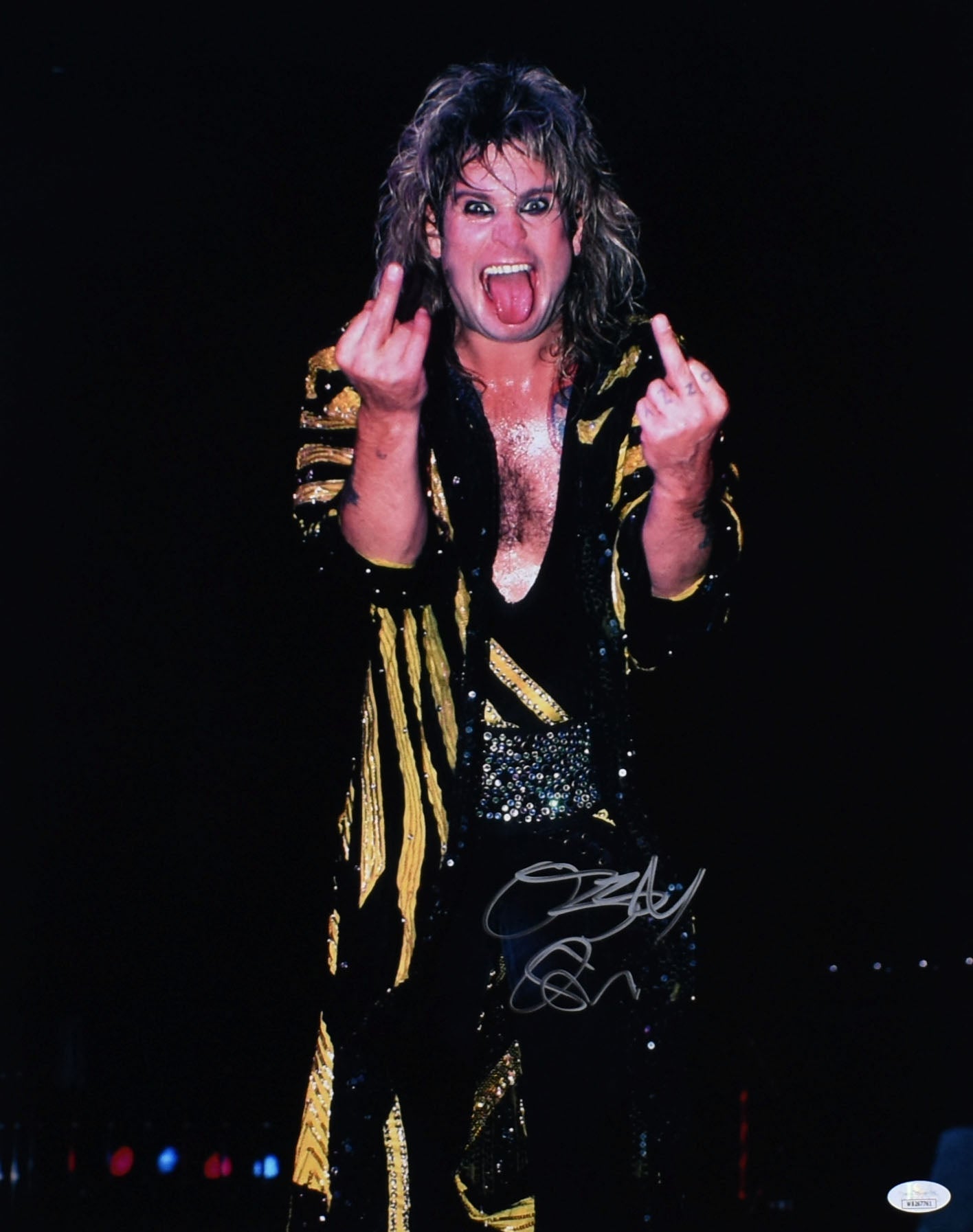 Ozzy Osbourne Autographed 16x20 Middle Finger Photo - JSA W *Silver is backordered and will ship as soon as it is back in stock.