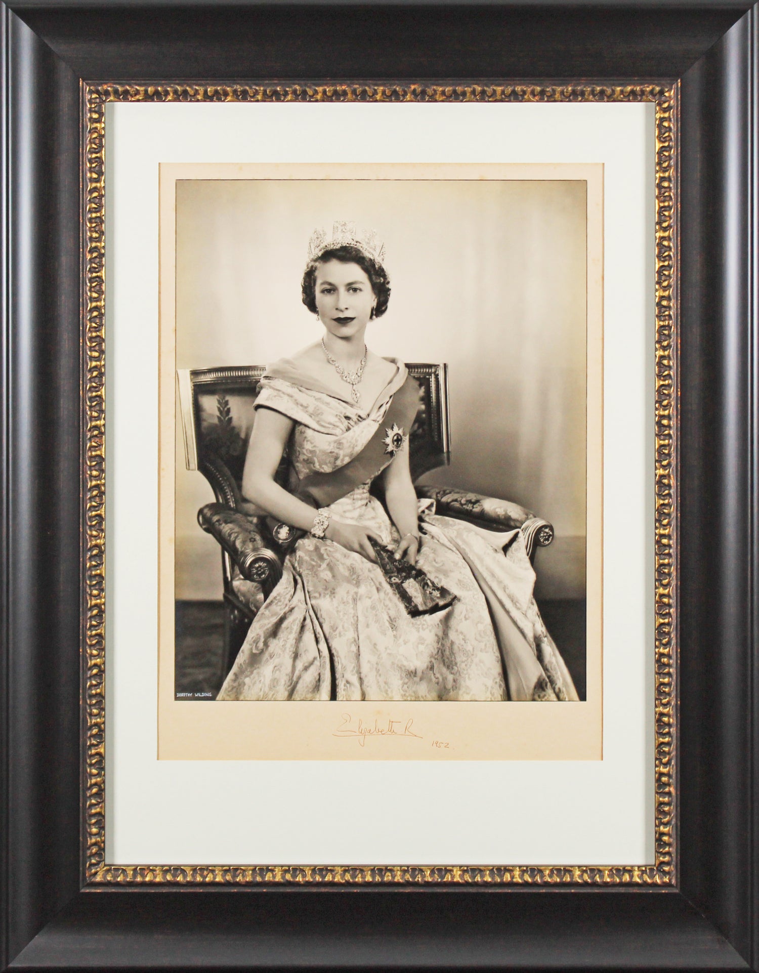 Own a piece of royal history with this Autographed 16x20 Framed Photo personally signed by Queen Elizabeth II, featuring the inscription "1952"—the year she ascended to the throne. This rare collectible is a must-have for history enthusiasts and memorabilia collectors alike. Professionally framed to an overall size of approximately 25.25 x 32.25 inches, this stunning display piece adds elegance and prestige to any collection.