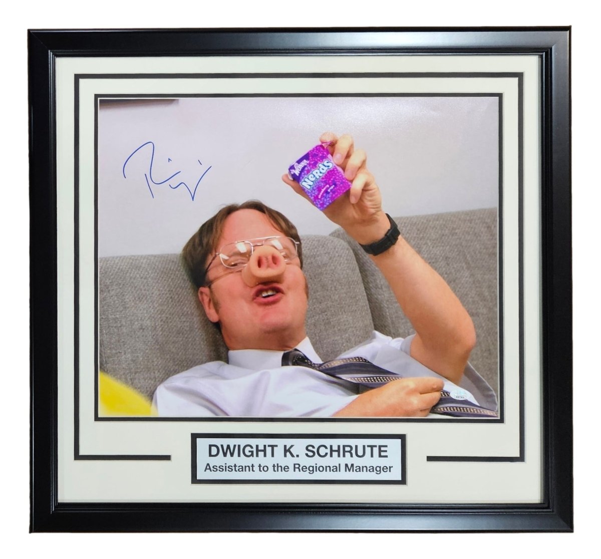 - Hand-signed by Rainn Wilson, famously known for portraying Dwight Schrute on The Office.