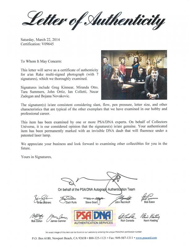 - Authentic hand-signed 11x14 cast photo from the hit TV series Rake.