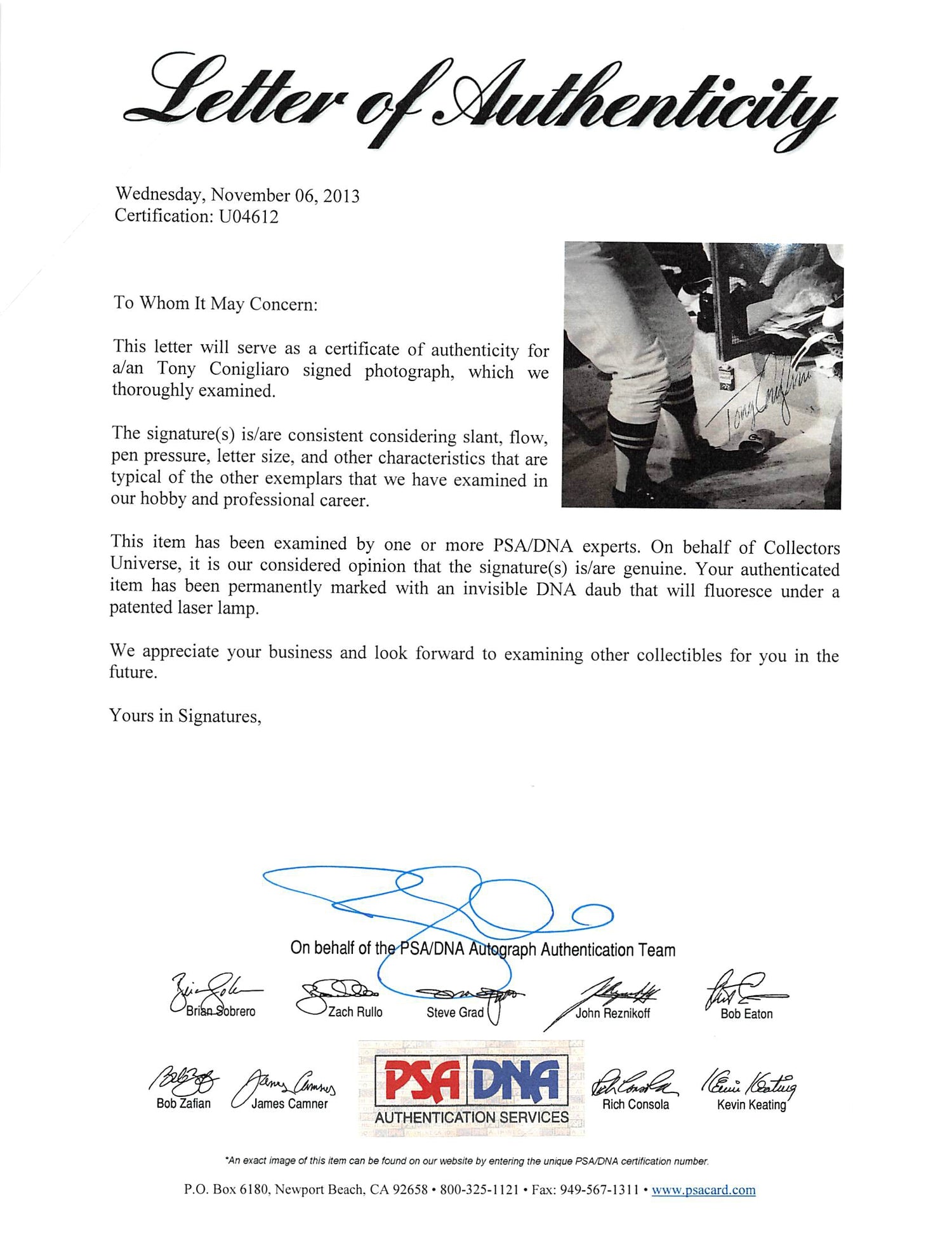 - Signed by Tony Conigliaro – Boston Red Sox icon and beloved home run hitter