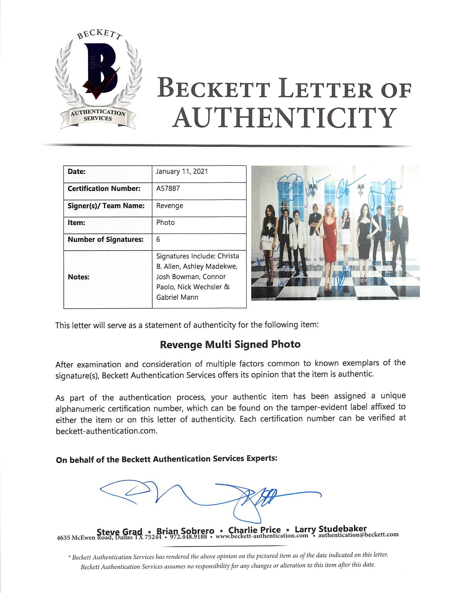 Revenge (6) Allen, Madekwe, Bowman, Paolo, Wechsler, Mann Signed 12x18 Photo BAS is backordered and will ship as soon as it is back in stock.