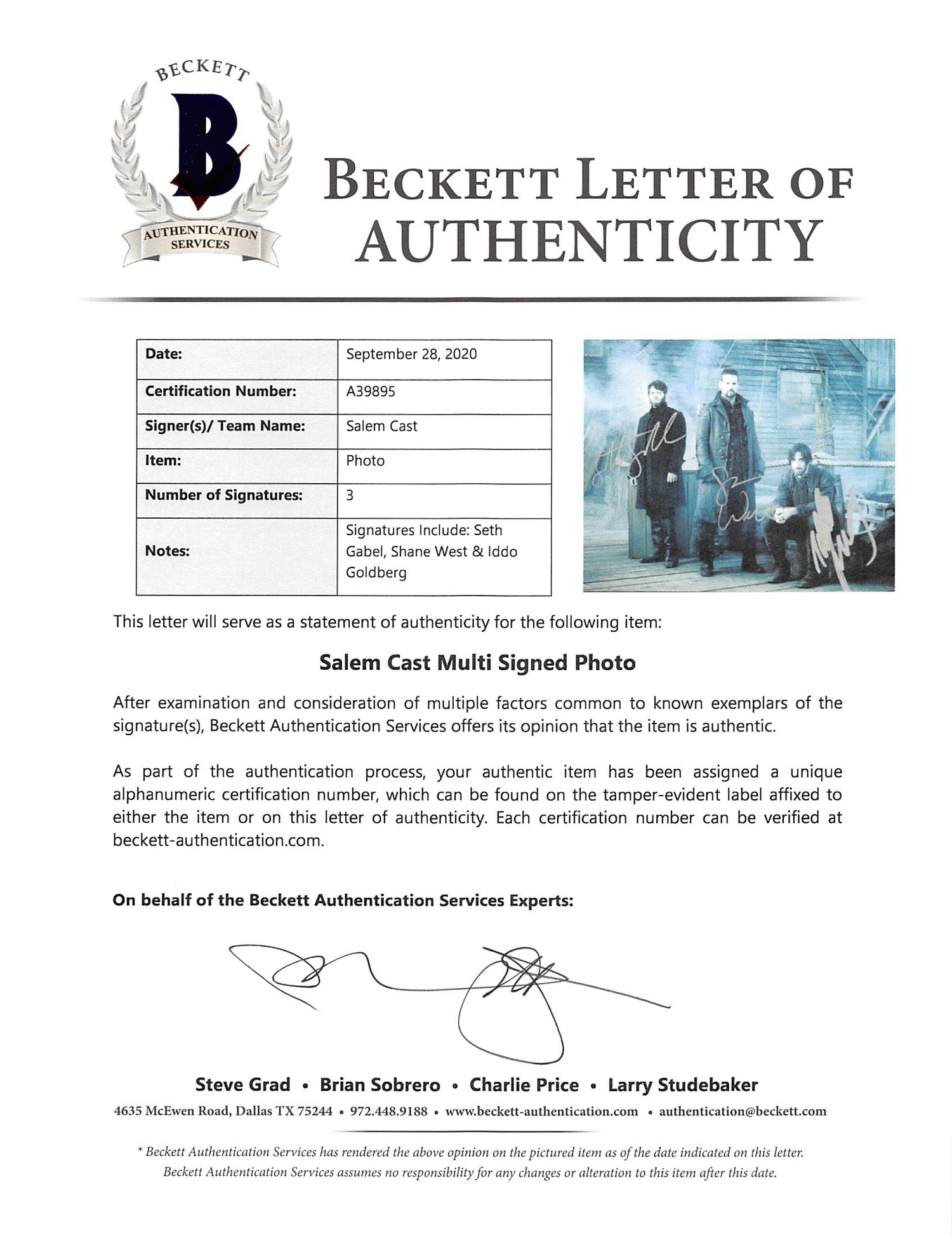 Salem (3) Gabel, West & Goldberg Signed 8x10 Photo Autographed BAS #A39895