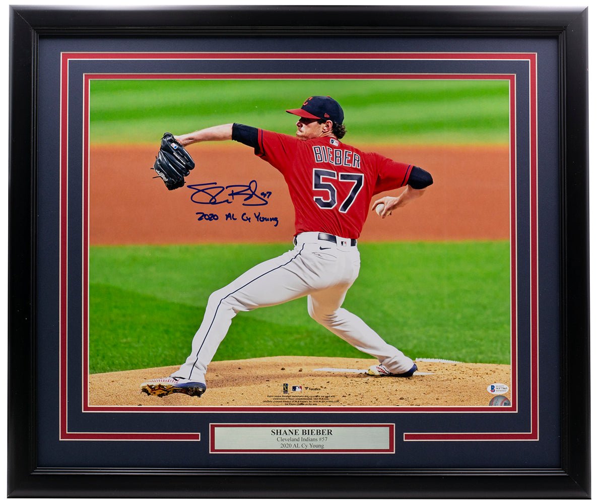 Shane Bieber Signed Framed 16x20 Cleveland Indians Photo 2020 AL CY Young BAS