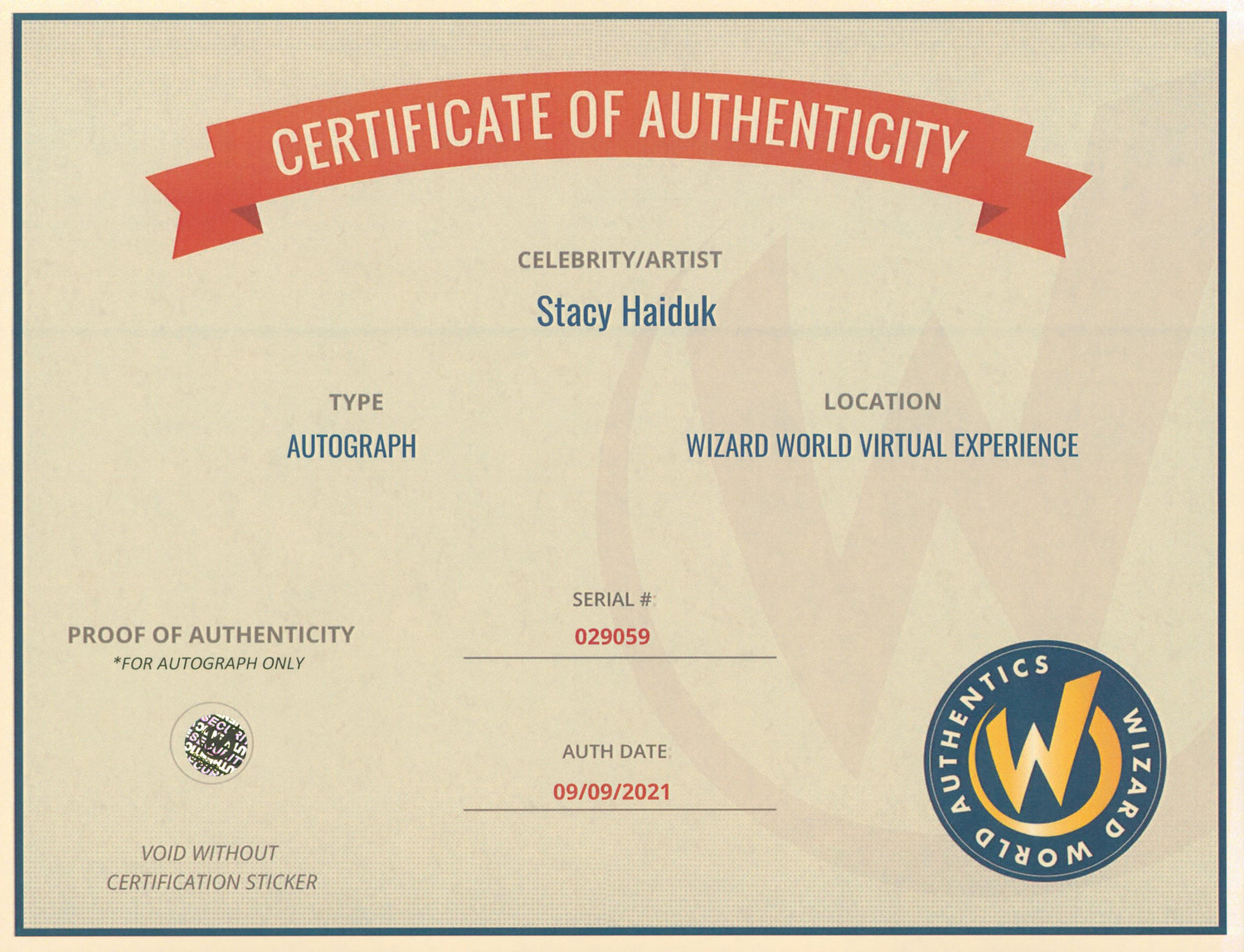 - Personally Signed: Stacy Haiduk's hand-signed autograph, making each piece unique.