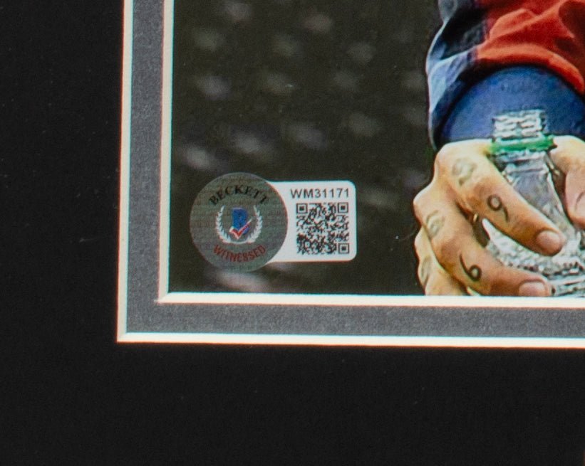 Enhance your collection with this Tekashi 6ix9ine signed and framed 11x14 photo, a must-have for hip-hop fans and pop culture collectors. This exclusive piece was hand-signed by Tekashi 6ix9ine in the presence of a Beckett authentication representative, ensuring its authenticity and value.