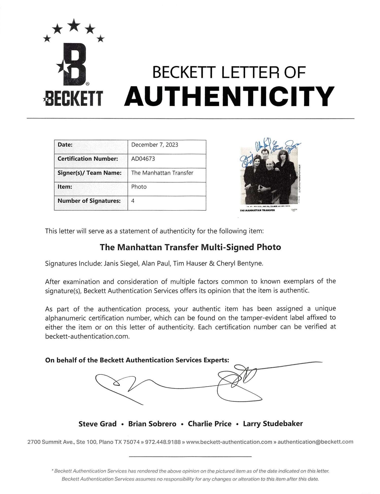 Don’t miss this opportunity to celebrate the legacy of The Manhattan Transfer with a rare, certified autographed collectible. Order yours today!