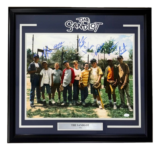 Celebrate one of the most beloved baseball movies of all time with this multi-signed The Sandlot 16x20 photo, featuring autographs from 8 original cast members. A nostalgic gem for fans of the classic 1993 film, this collector’s piece captures the heart and humor of The Sandlot and brings together some of its most unforgettable characters. Professionally framed and matted to approximately 24x30, it’s ready to display in your home, office, or memorabilia wall.