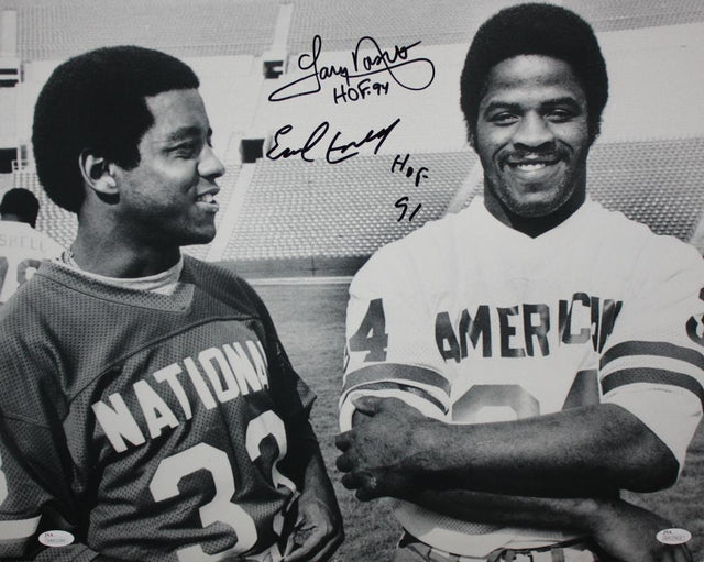 Tony Dorsett Earl Campbell Autographed HOF 16x20 B&W Photo - JSA W Auth is backordered and will ship as soon as it is back in stock.