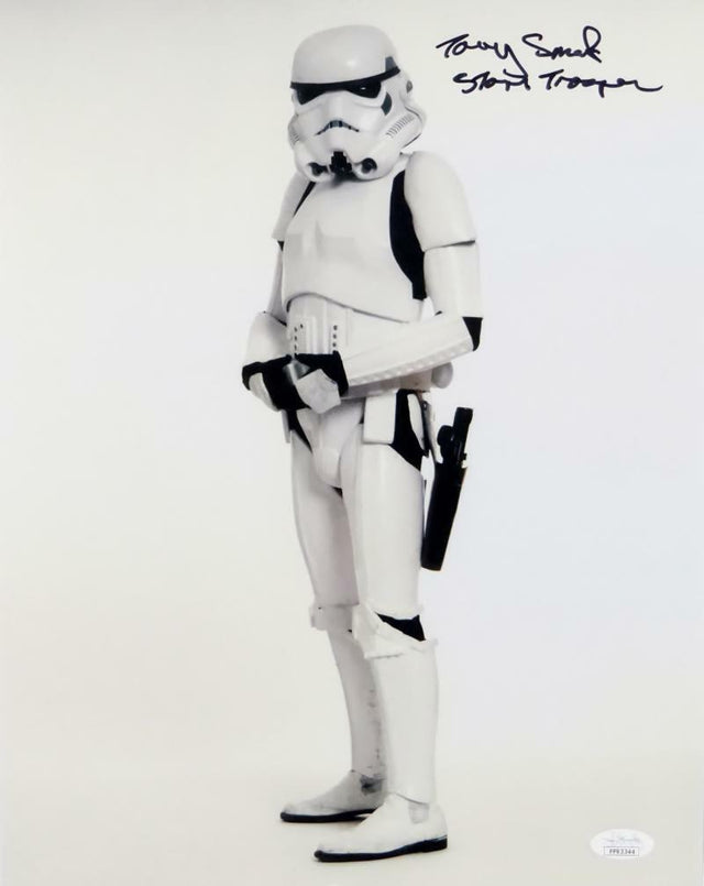 Own a piece of Star Wars history with this hand-signed 11x14 photo of Tony Smith, who portrayed a Stormtrooper in the legendary sci-fi saga. A must-have for collectors and fans, this autographed photo is a tribute to the galaxy far, far away.