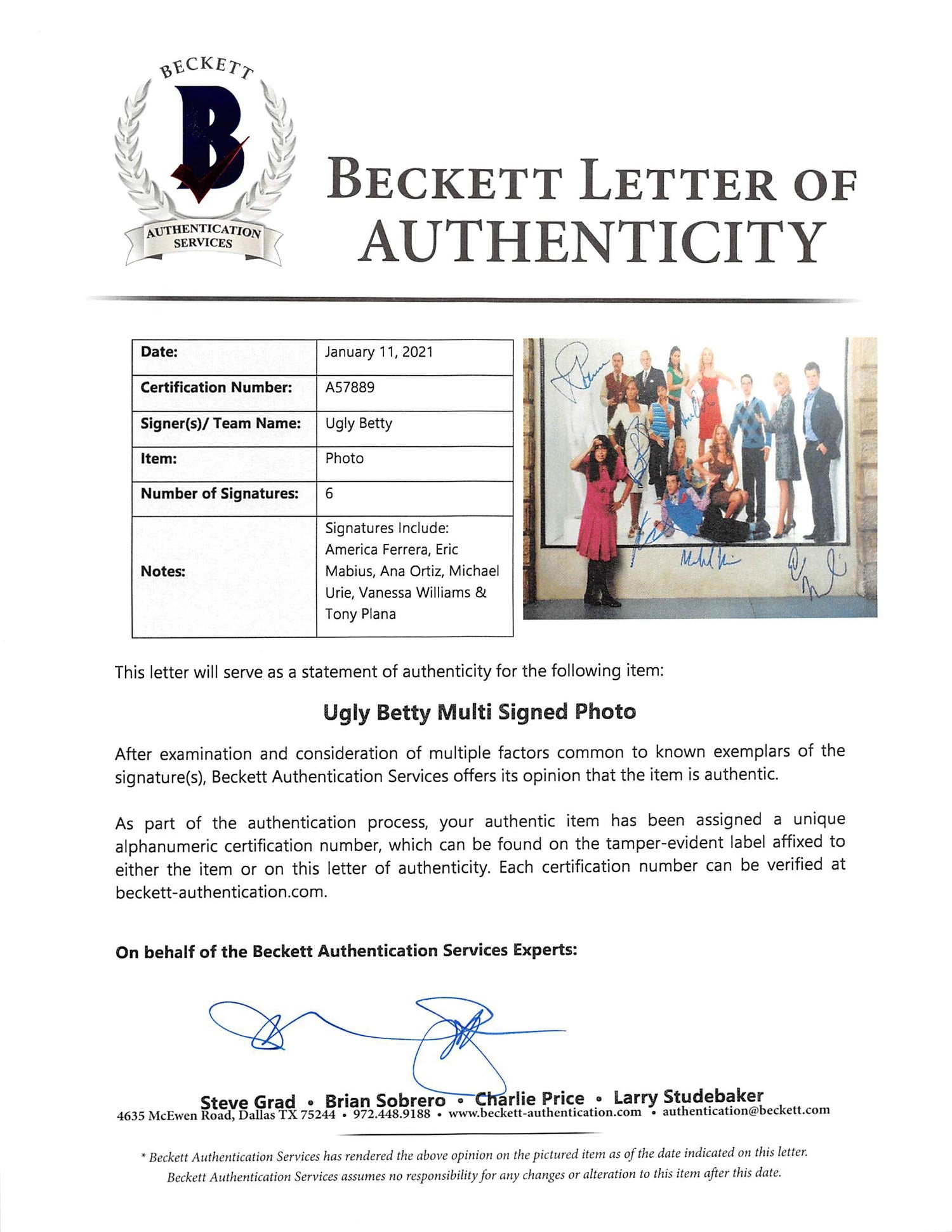 Ugly Betty (6) Ferrera, Mabius, Ortiz, Urie, +2 Signed 12x18 Photo BAS #A57889 is backordered and will ship as soon as it is back in stock.