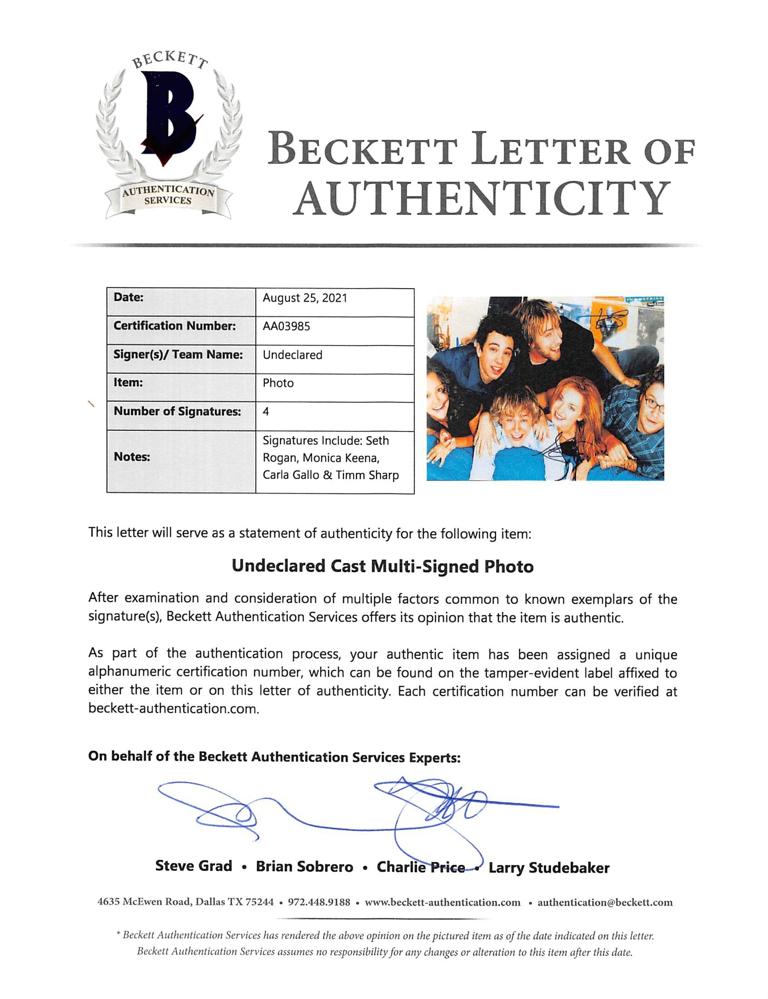 Whether you're an Undeclared superfan or a collector of pop culture memorabilia, this signed photo is a must-have. Secure this 100% authentic collectible today before it's gone!