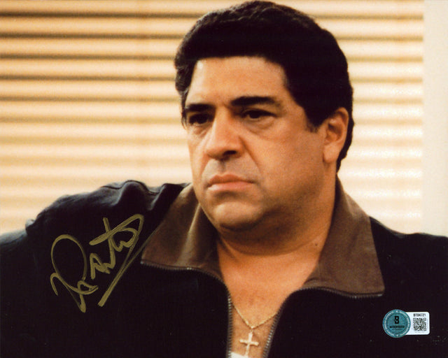 Own a piece of television history with this Autographed Horizontal 8x10 Photo personally signed by Vincent Pastore of The Sopranos. Best known for his unforgettable role as Salvatore "Big Pussy" Bonpensiero in the iconic HBO series The Sopranos, Vincent Pastore's signature is a must-have for devoted fans of the groundbreaking show that reshaped modern television. This signed photo captures a timeless moment connected to one of the most beloved characters in mobster TV lore. Each photo is 100% Authentic and verified by Beckett Authentication Services (BAS)—a trusted name in memorabilia authentication. While the signature’s size, placement, and strength may vary slightly due to the hand-signed nature of the item, every autograph is unique, making this a valuable collector’s piece for Sopranos devotees and pop culture fans alike.