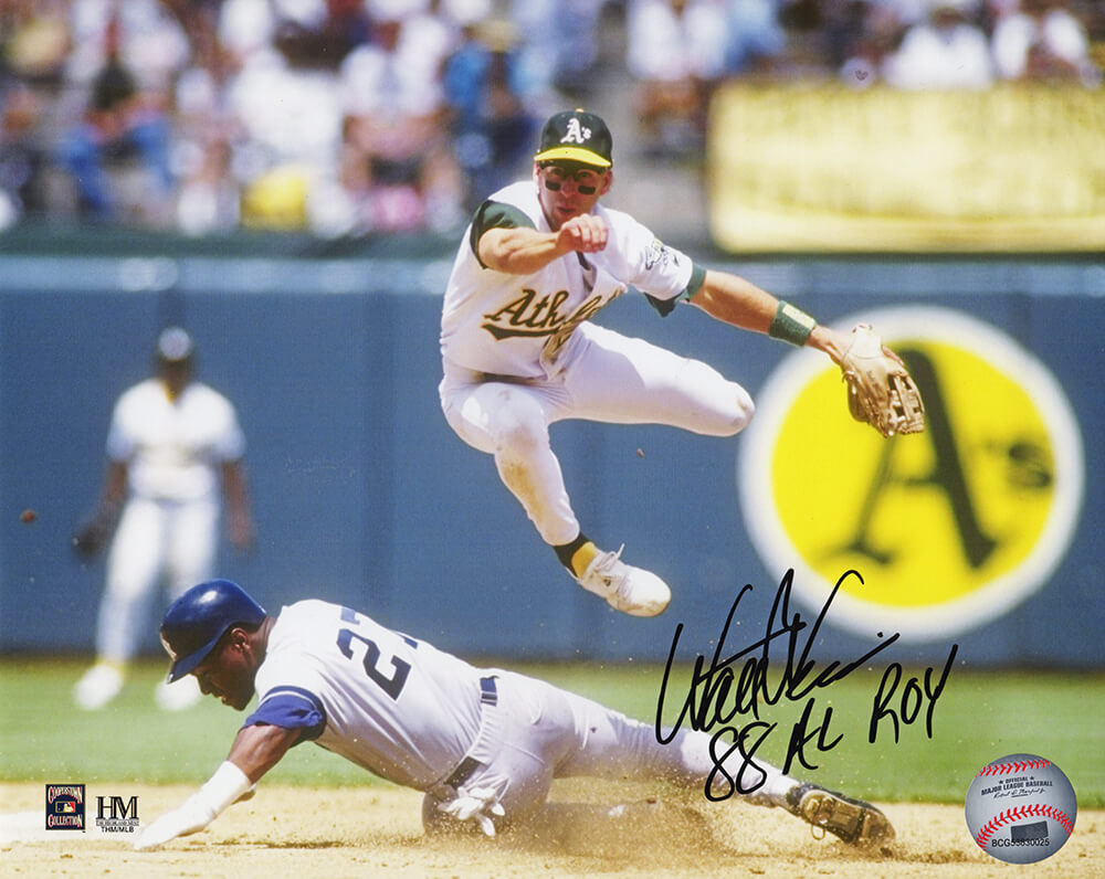 Walt Weiss Signed Oakland A's Turning Double Play Action 8x10 Photo w/88 AL ROY