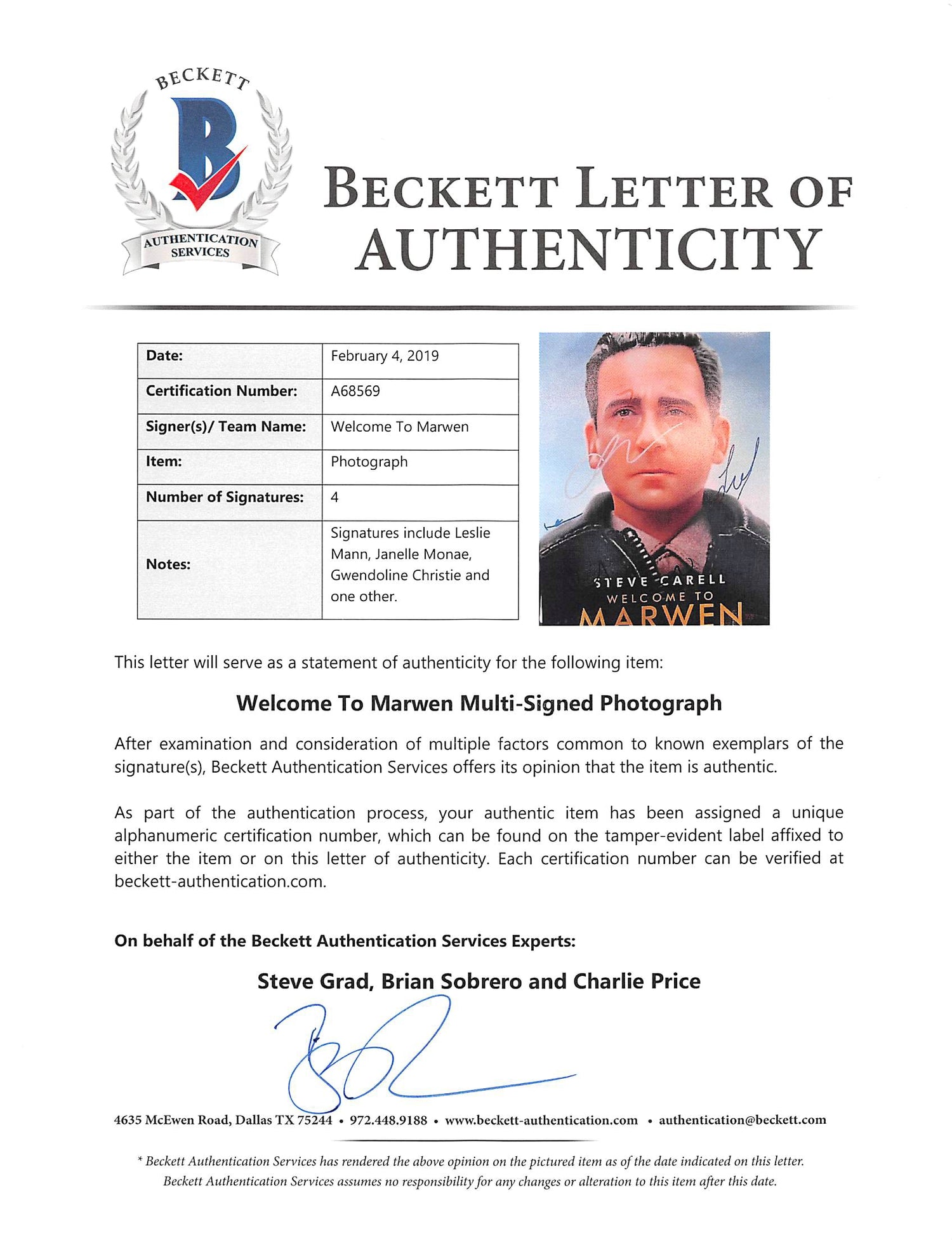 Each autograph has been meticulously authenticated by Beckett Authentication Services, ensuring its legitimacy. You can verify the authenticity by checking the Beckett website. Whether you're a die-hard movie collector or looking for a standout gift, this signed Welcome to Marwen photo is an extraordinary addition to any collection. Don’t miss your chance to own this genuine piece of cinematic memorabilia!