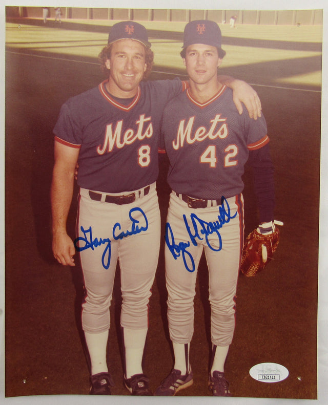 Own a piece of baseball history with this Gary Carter & Roger McDowell Signed 8x10 Photo, authenticated by JSA (CB21722). This autographed photo captures two key figures from the legendary New York Mets era, making it a must-have collectible for fans and memorabilia enthusiasts.
