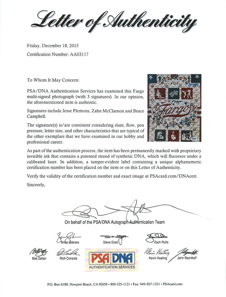 Fargo (3) Plemons, McClarnon, Campbell Authentic Signed 8X10 Photo PSA #AA03117