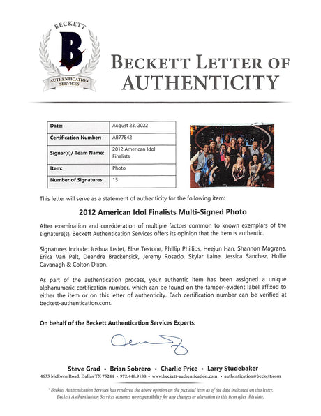 American Idol Finalists (13) Ledet, Phillips Signed 8x10 Photo BAS #AB77842