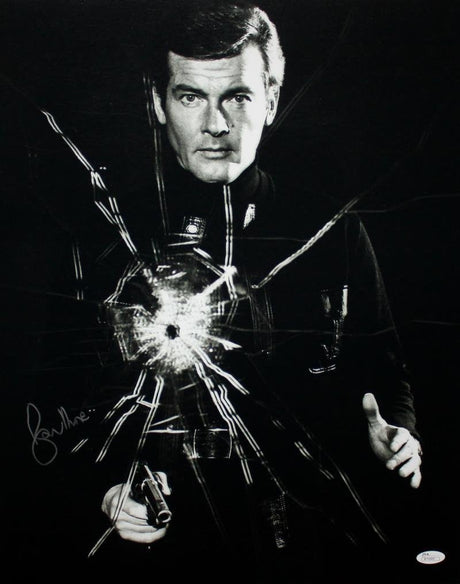 Roger Moore Autographed 16x20 James Bond Shattered Glass - JSA Authenticated