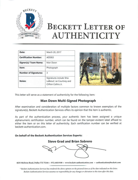Man Down (3) LaBeouf, Courtney, & Collins Jr Signed 11X14 Photo BAS #A05063