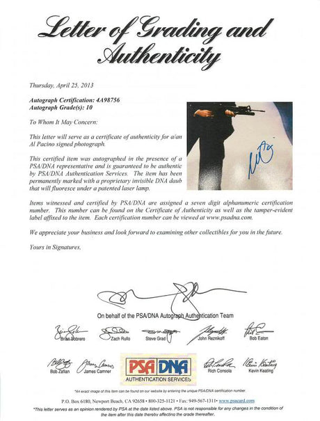 Al Pacino Scarface Signed Authentic 16X20 Photo Graded Perfect 10! PSA #4A98756