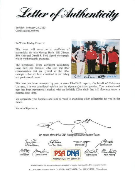 Bill Clinton, George Bush, Gerald Ford & Bob Hope Signed 8X10 Photo PSA #X03401