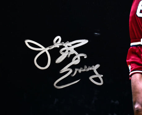 Julius Erving Autographed 76ers 16x20 FP B&W Spotlight Dunk - Beckett W Hologram