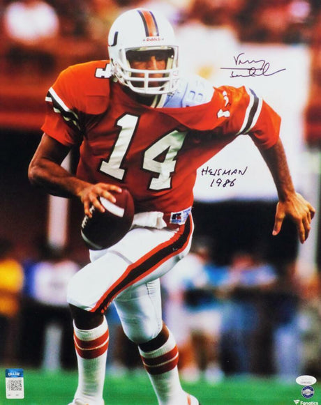 $209Unit price /Unavailable Vinny Testaverde Signed Hurricanes 8x10 Running FP Photo w/ Heisman - JSA W Auth