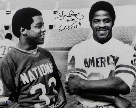 Tony Dorsett Earl Campbell Autographed HOF 16x20 B&W Smiling Photo- Beckett Auth