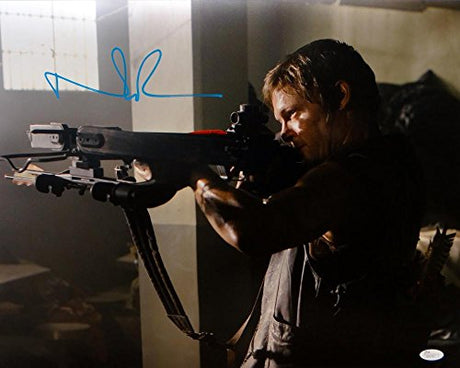 Norman Reedus Signed *Teal Walking Dead 16x20 Standing W/Crossbow Photo-JSA Auth